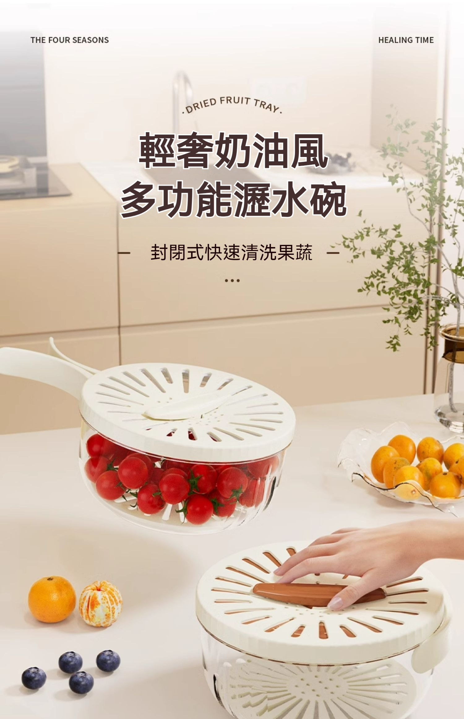 新款多功能帶蓋濾水碗,加厚雙層濾水,家用洗水果+冰箱收納碗+戶外野餐便攜+涼拌沙拉四合一多功能濾水果籃