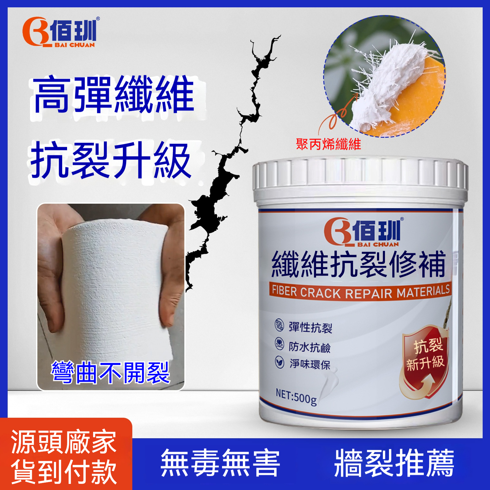 台灣熱銷【佰玔纖維修補膏 】牆面裂縫修補抗裂彈性補牆膏吊頂修補!快速修復! 防潮, 防霉,防漏! 不含甲醛 ,不用專業工人,自己就可以搞定